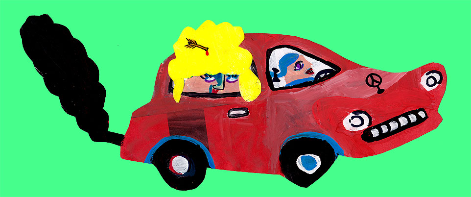 Mozart und Liebling. Freie Arbeit aus der Serie “Cars”, Collage, Gouache