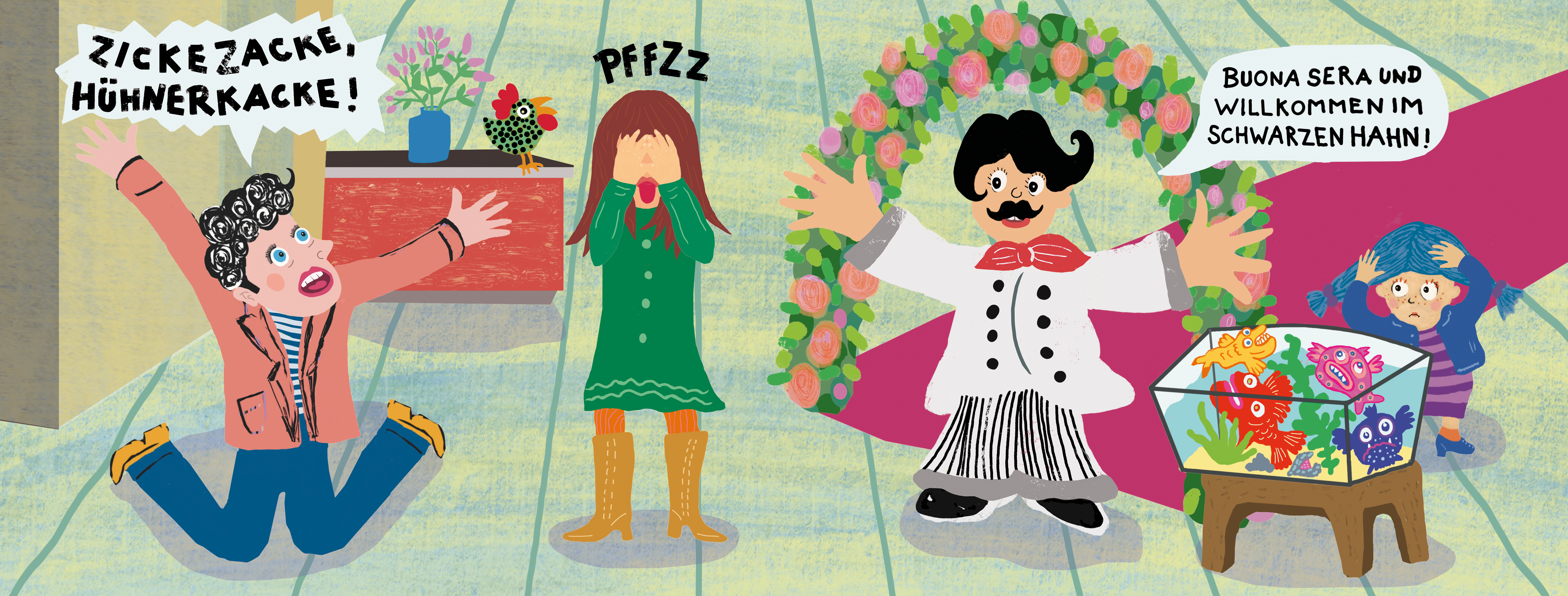 »… poppig bunt, kindlich durchgeknallt und ein Vergnügen …« F.A.Z. / Fridtjof Küchemann